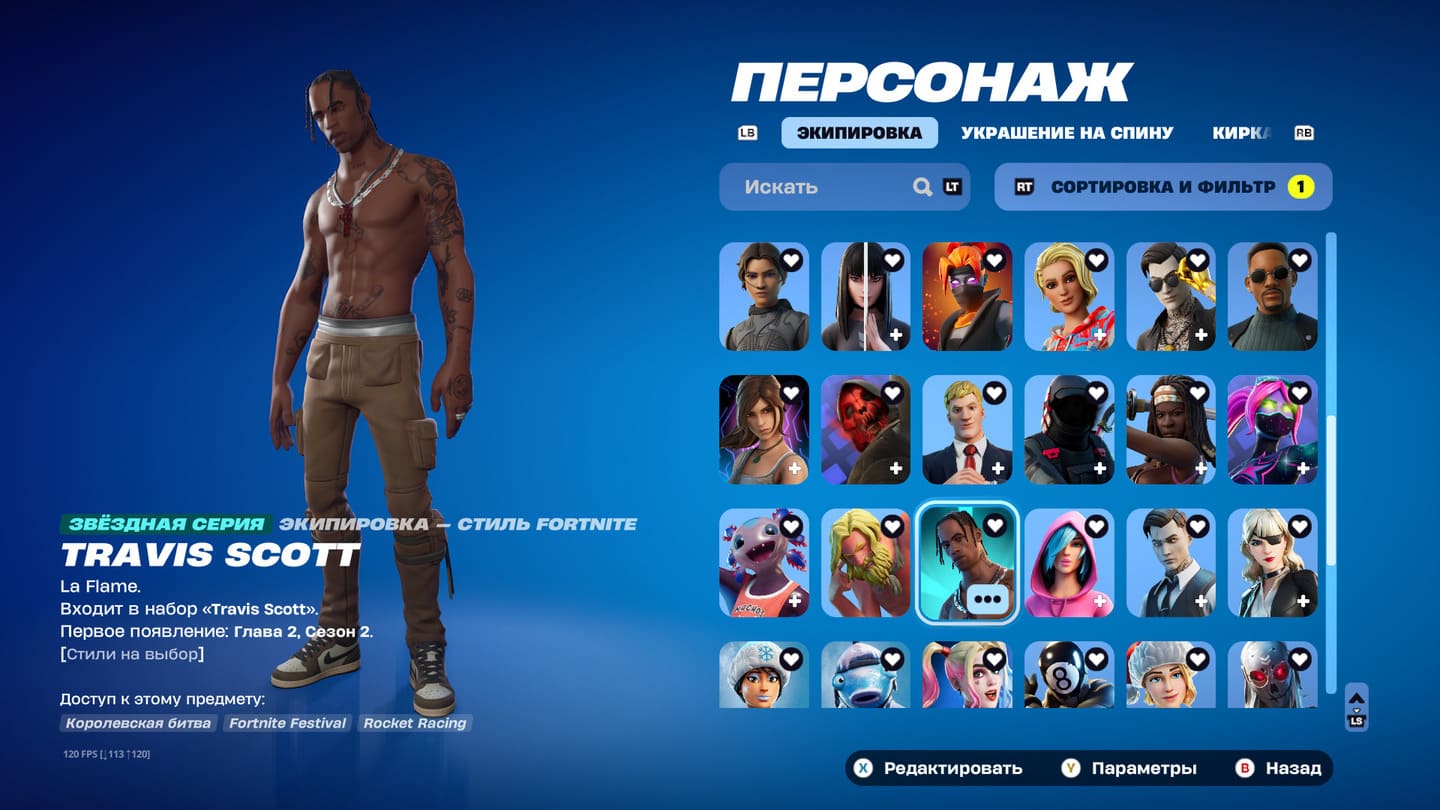 ⭐️ Боевой пропуск: 2-11 сезон⚔️ PVE💥 Всего скинов: 120🔥 Топ скины: 10+💰 1208V Bucks