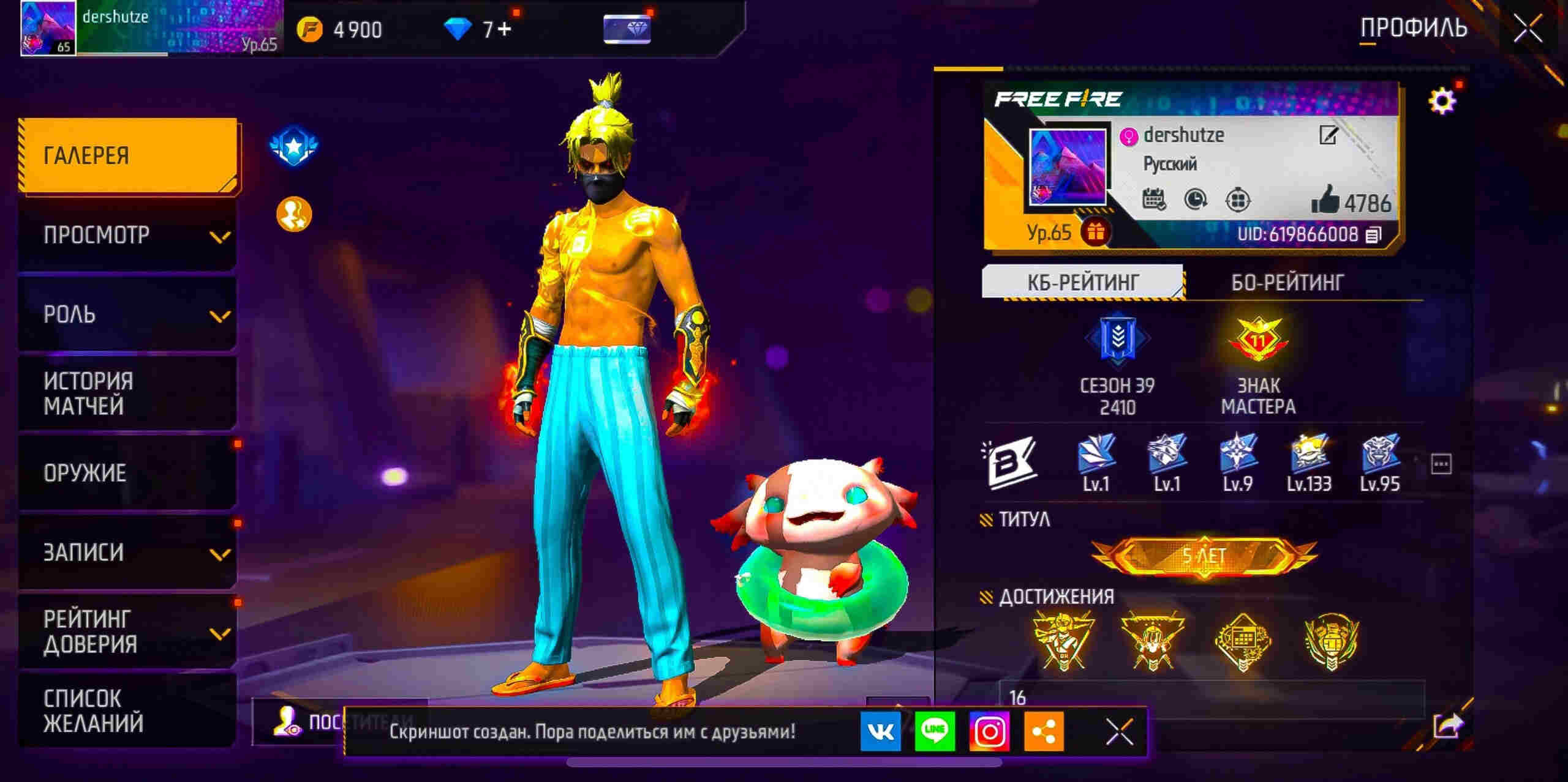 🚶♂️Персонажи: 40/40; 🐱Питомцы: 87; ⭐️Пропуск: все сезоны; 👚Костюмы: 27; 🌈Скины на оружие: 351