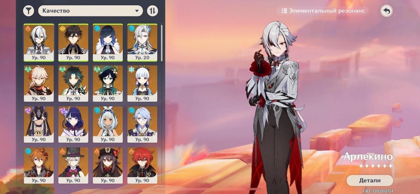 📈 Ранг: 60 🧍♀️ Персонажи: Арлекино, Нёвиллет, Лини, и другие ✨ Примогемы: 435