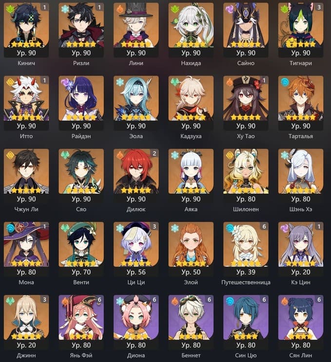 📈 Ранг: 60 🧍♀️ Персонажи: Е Лань, Ху Тао, Джинн и другие 🦾 Оружие: 5 звезд ✨ Примогемы: 340