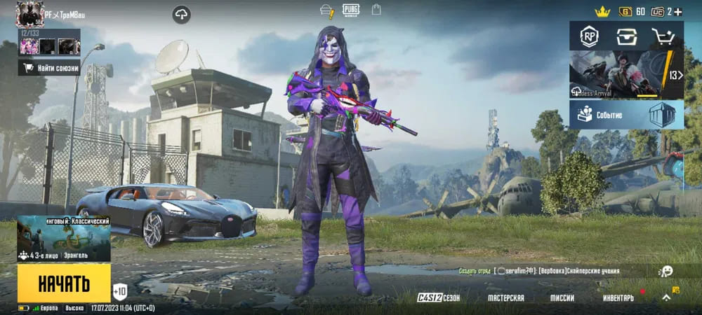 👚Топ костюмы: 17;⭐️Royale Pass: с 2 сезонна;🌈Скины на оружие: 26;