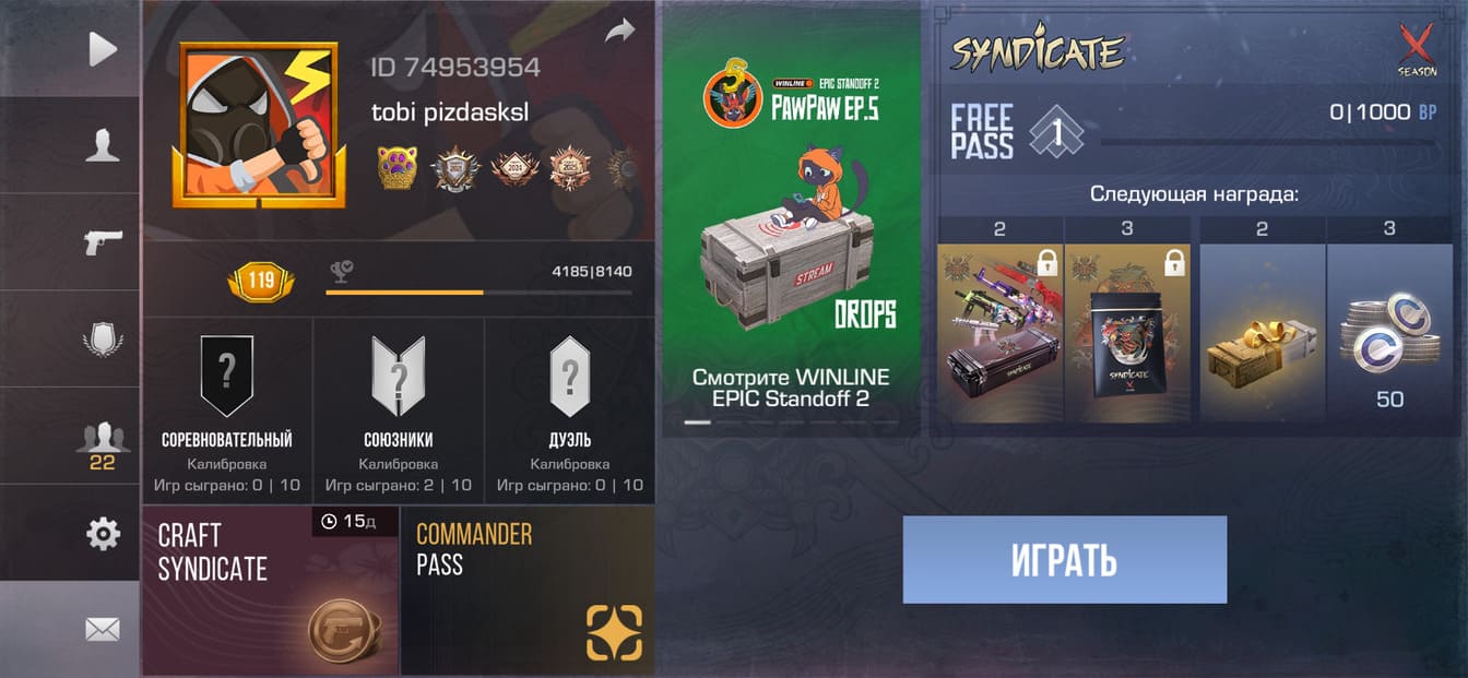 📈Уровень: 119;