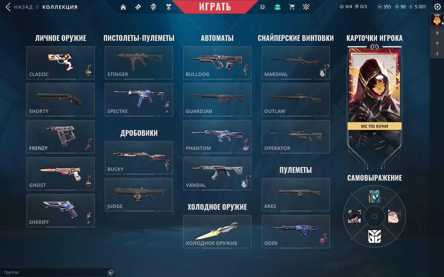 🥈Battle Pass: 3-8 Акт;✨Агенты: 23;🔫Скины на оружие: 90+;