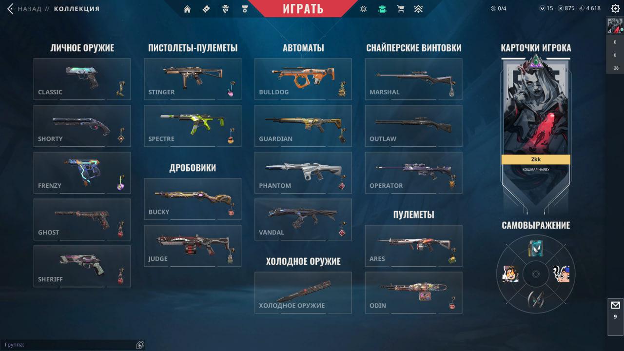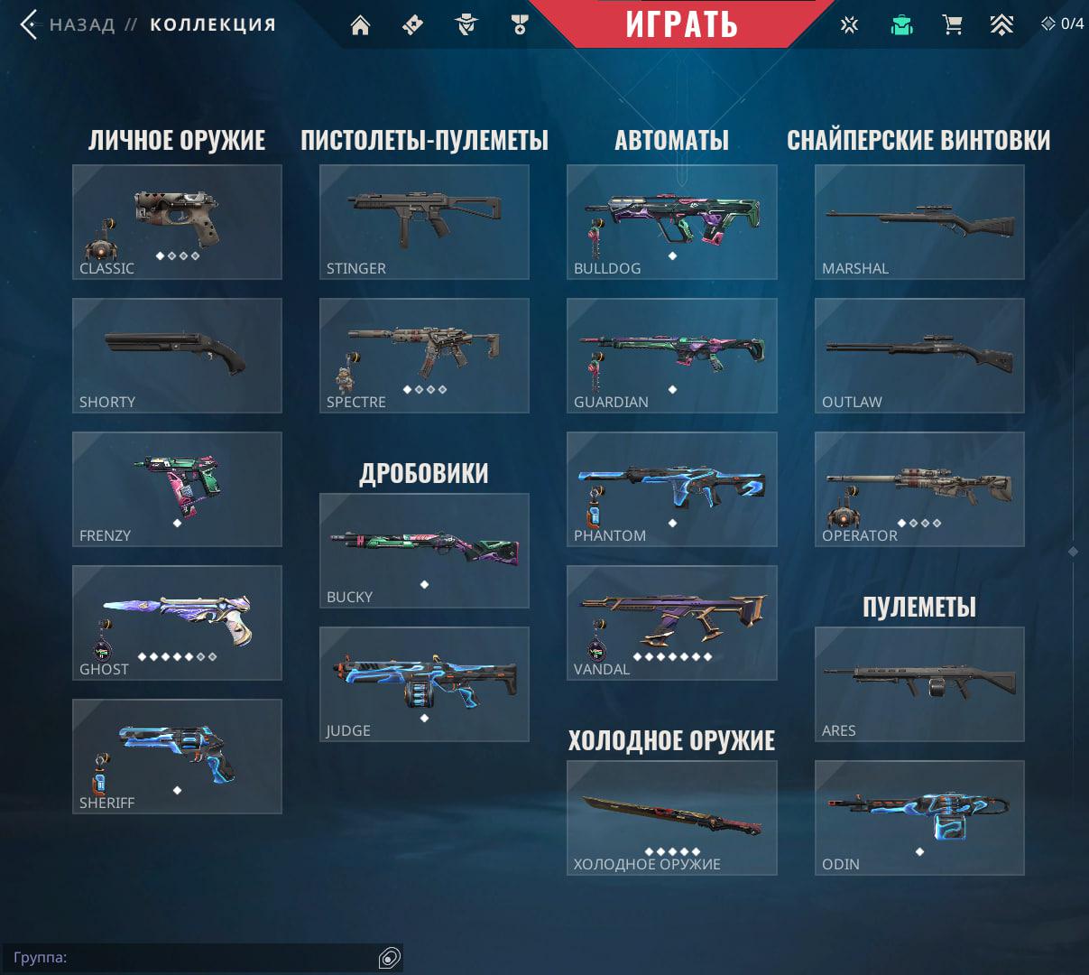 🥈Battle Pass: 1-4 Акт;✨Агенты: 20;🔫Скины на оружие: 10+