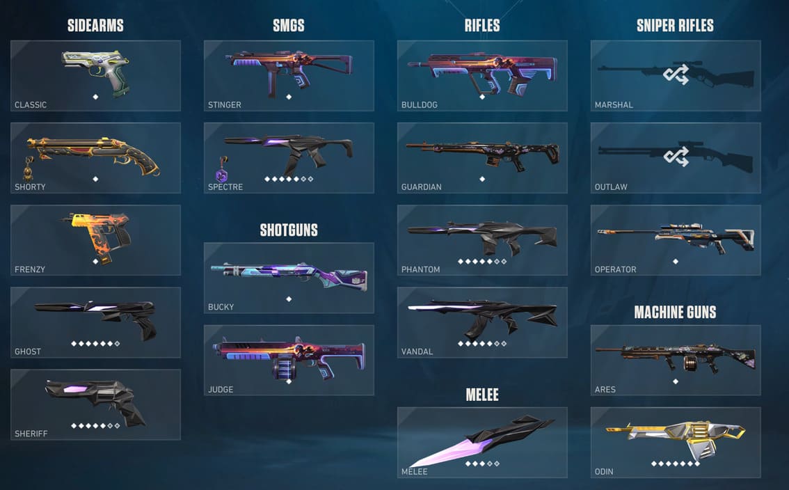 🥈Battle Pass: 1-2 Акт;✨Агенты: 24;🔫Скины на оружие: 30+