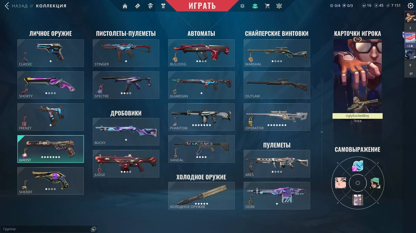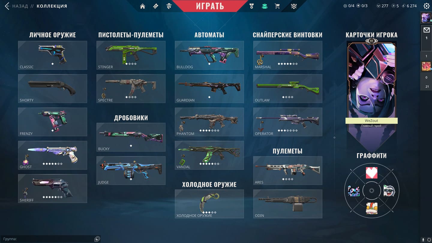 🥈Battle Pass: 1-5 Акт;✨Агенты: 27;🔫Скины на оружие: 60+