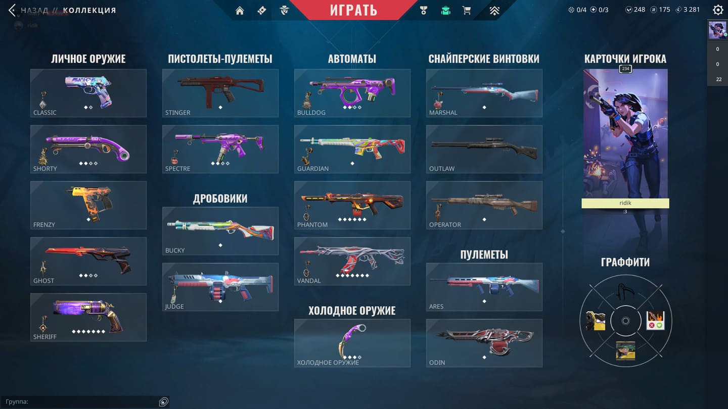 🥈Battle Pass: 1-3 Акт; ✨Агенты: 24; 🔫Скины на оружие: 20+